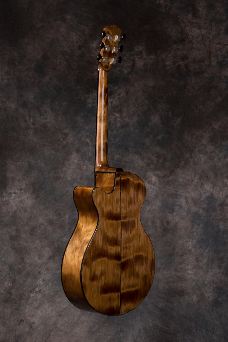 The Williams Signature Series is my line of instruments that employ ancient kauri for the neck, as well as the back and sides, of the instrument. The tonewoods and neck of ancient kauri for Signature models are all cut from the same flitch to better match the figure and colour, although some variation is normal. The below samples are actual sets, or flitches, that I am building with at present and each flitch can yield 4 or more sets. The L. J. Williams Signature Series brings together the neck, back and sides to showcase this remarkable timber in an instrument that is truly exceptional.