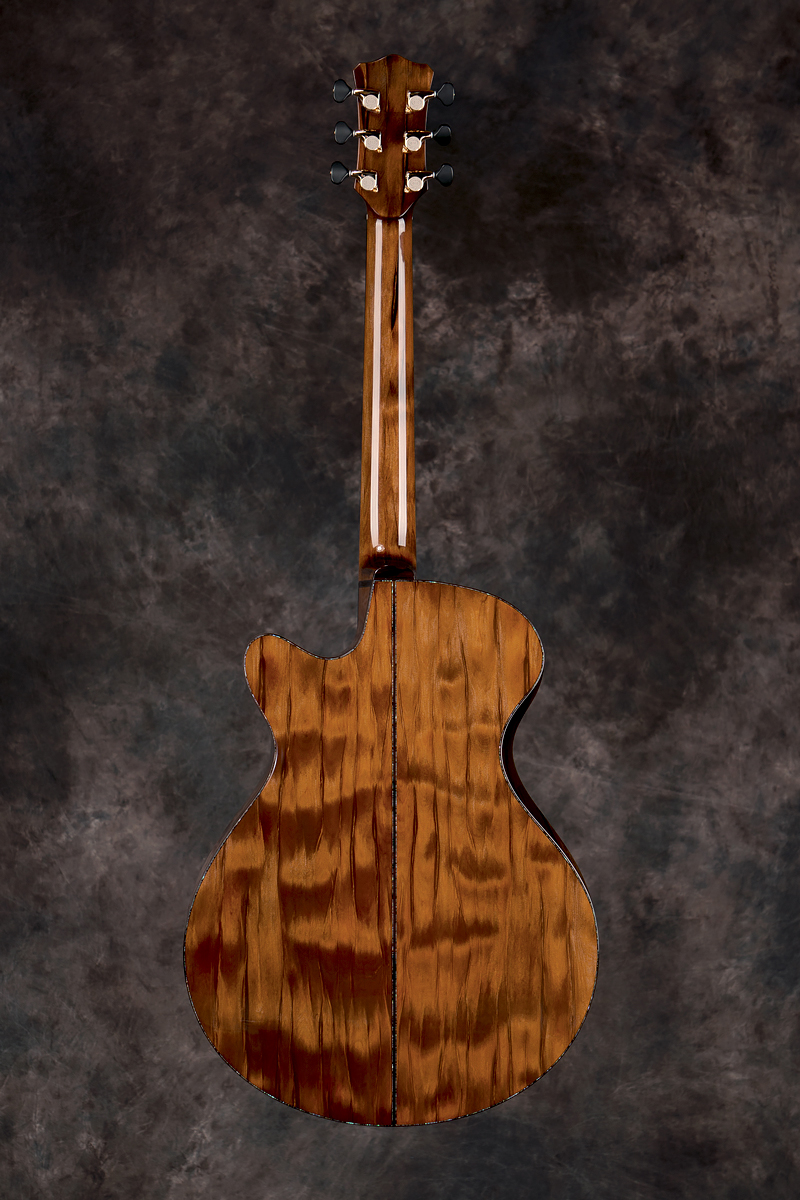 The Williams Signature Series is my line of instruments that employ ancient kauri for the neck, as well as the back and sides, of the instrument. The tonewoods and neck of ancient kauri for Signature models are all cut from the same flitch to better match the figure and colour, although some variation is normal. The below samples are actual sets, or flitches, that I am building with at present and each flitch can yield 4 or more sets. The L. J. Williams Signature Series brings together the neck, back and sides to showcase this remarkable timber in an instrument that is truly exceptional.